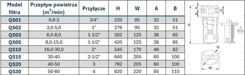 Separatory cyklonowe zainstalowane przed filtrem sprężonego powietrza i sprzętem osuszającym mogą usunąć 99% wody, zwiększając wydajność urządzeń oczyszczających. Unikalna dwustopniowa konstrukcja separatora cyklonowego sprawia, że jest on bardziej skuteczny niż tradycyjny separator. Separator może również zostać opcjonalnie zamontowany w sprężarce powietrza, przed tylną chłodnicą, a za zbiornikiem powietrza.